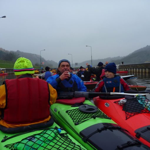 Vstávání na sobotní start v 6 h. je první těžkou chvíli dne. Pádlování po zdrži Orlické přehrady je prima, užívám si ranního oparu nad vodou, skrz který slunce prosvítá. 10 km Kamýckou zdrží je pohoda, zato přenášení mi dává zabrat. Představa zbývajících 45 km vzdutím Slapské přehrady je krutá. Na 70. km už nevím, jak sedět, záda bolí jak čert, krize ťuká na okénko. Po další hodině pádlování mě svazující únava opouští, bavím se skákáním po vlnách od člunů. A pak se blíží cíl závodu, kajak sám klouže po vodě rychleji a rychleji. I přes několik technických zastávek jsem dal 106 km za 10:29 hod.-prý rekord trati. Z euforie a pocitu nesmrtelnosti postupně přecházím do stavu naprostého vyčerpání, zaléhám pod borovici a až do večera jsem hodnej tichej kluk. Večer po dojezdu si neumím představit, že bych ještě kdy sedl do kajaku. Ale již druhý den se na mě pádlo i kajak zase přátelsky usmívají, bolest je pryč a já jim opět neodolám…. HáGéčko, díky za kajak. Andělé, díky za pomoc.