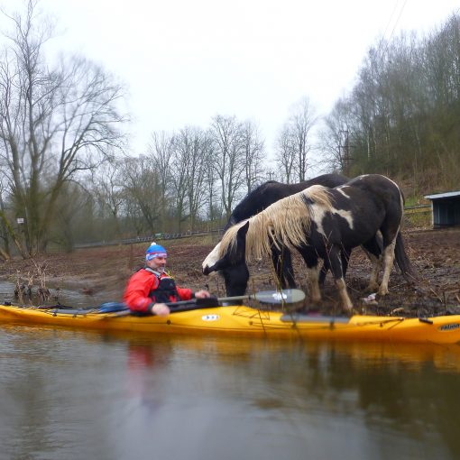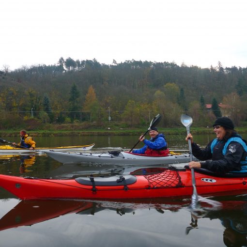 Po vyhlášení výsledků a ukončení akce zbývá ještě do konce dne dost času. Vítr se dokonale utišil, jít v tom horku do města se mi nechce, beru si tedy seakajak a jdu se projet. Vodní hladina je sice hladká jako sklo, ale beru si vestu i šprajdu. Jsem snad 200 m od břehu, když od západu do mě drcne krátký větrný poryv. Po chvíli následuje druhý. Napotřetí už to není poryv, ale větrná stěna, která do mě praští a už nepovolí. Vichřice strhává vodní tříšť z hladiny a žene ji s sebou. Během pár okamžiků se začínají zvedat vlny. Písčitá pláž s opalujícími se těly mizí v bílé písečné cloně. Kousek ode mě vidím malý motorový člun, do něhož se snaží z vody nalézt koupající se rodinka naháčů. Rodičům a jednomu dítěti se to daří, druhé dítě smršť strhává po vlnách od zakotveného člunu. Přejíždím k mávajícímu dítěti. Chytá se mě za záď a dopravuji ho do bezpečí člunu. „Danke schön“, slyším od vyděšených rodičů. Odrážím od člunu a mířím šikmo proti větru k pláži. Do pádla mi udeří nečekaný silný poryv. Nemohu mu vzdorovat a převrací mě. Vylehávám na pádlo, ale něco je špatně, namísto abych se listem pádla opřel o vodní hladinu, list se zařezává. V rychlosti registruji, že se mi uvolnila fixace dělené žerdi a pádlo se mi samovolně protočilo. Další větrný poryv mě nekompromisně vytahuje z kajaku, aniž by se převrátil. Letím po větru a dopadám do vln. Když se vynořím, vidím, že přímo na mě letí vzduchem trup mého kajaku. Chytám ho, ale je to takový náraz, že mě to potopí. Vichr loď podebírá a snaží se ji vznést do výše. Vlny mě zatápějí, kajak mě fackuje. Ručkuji tedy podél obvodového lana k zádi kajaku a nechám ho vyvlát po větru jako plachtu. Pak se snažím do kajaku nalézt. Několikrát se mi to podaří, ale než se v něm pořádně usadím, větrný poryv či turbulentní vlna mě znovu sráží do vody. Zkouším tedy nalézt do převrácené lodi a vyeskymovat. V Boře však nemám dořešenou fixaci nohou proti vypadnutí, eskymák se mi nedaří, z lodi vypadávám. Opět vylézám na palubu, abych v klidu zvážil další postup. Nezbývá než chytit kajak za špici a doplavat ke břehu. Pak ale vidím, že ke mně přijíždí kajakář na surfski. Opřu se o trup jeho kajaku a tentokrát již úspěšně nasedám. Krátká chlapácká výměna typu „Poněkud větrno, není-liž pravda?“ a jedu ke břehu. Nohy mě pálí jako od kopřiv, medúzy si mě vychutnaly. Když se zajdu po půl hodině podívat na pláž, po větru ani památky. Jen zpěněné moře a pár zavátých Němců prozrazují, že se tu něco před chvílí dělo 🙂