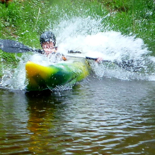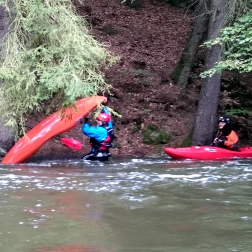 A nakonec se vždy najde nějaký nadšenec, který do toho kamenitého skoro bezvodého koryta stejně s loďkou vleze a hlučně se sveze po kamenitém dně 😀.