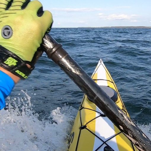 Zatím fouká jen mírně, ale dle předpovědi odpoledne vítr přitvrdí. Proto spěchám, aby mě silnější poryvy zastihly, až když se stočím po větru. Ale ještě před dosažením ostrova, tedy po nějakých 12 km, už fouká docela dost. O divoké pobřeží ostrova se rozbíjí příboj, vlny se dmou výš a výš, větrné vlny běží šikmo zprava, odražené od útesů šikmo zleva, na nejzažším místě už to je docela chaos, lítám 2 m nahoru a dolů, zleva doprava….