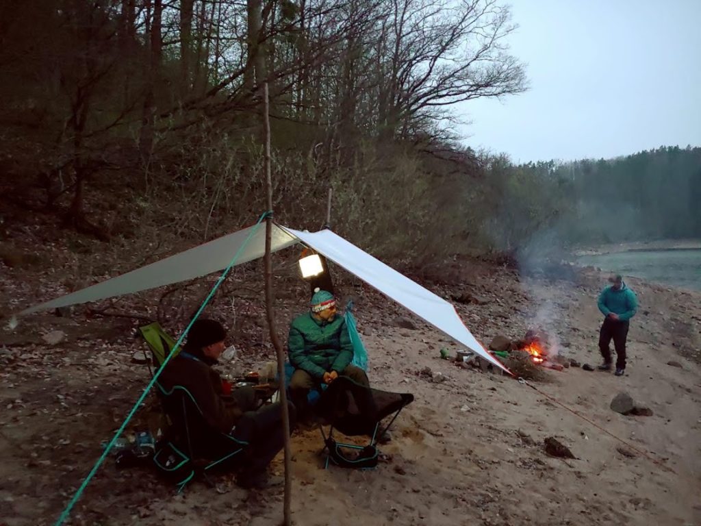 Sedíme u ohně debatujeme o všem možném. Lehce se rozprší a to vydrží až do rána a k tomu sakra fouká. Ráno vstaneme, posnídáme, zabalíme a než vyrazíme proti proudu