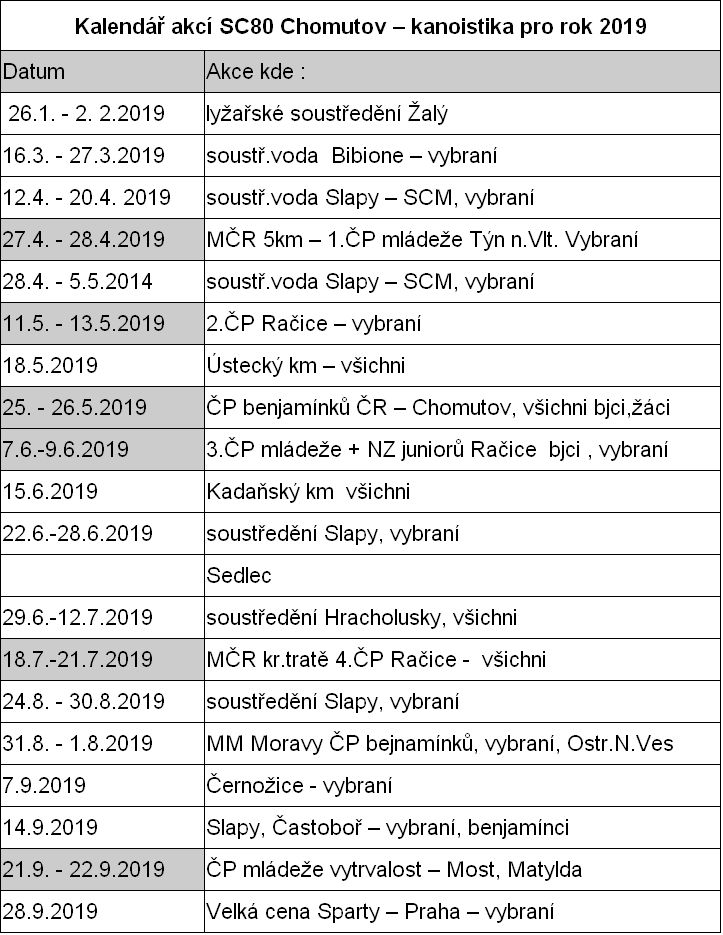 | 25. – 26.5.2019 | ČP benjamínků ČR – Chomutov, všichni bjci,žáci |