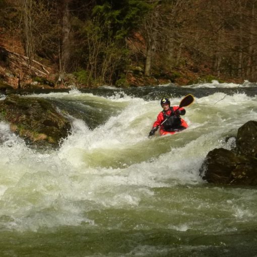 V pátek voda kulminuje, v sobotu už by dle předpovědi opět mělo přituhnout. Kostky jsou vrženy. Chvíli váhám, zda si řeku sjet na plasťáku, na seakajaku či na sjezďáku. Každý z nich má své přednosti. Nakonec se intuitivně rozhoduji pro tu nejvratší, nejméně pohodlnou, ale nejvíce vyzývavou variantu – pro sjezdový kajak.