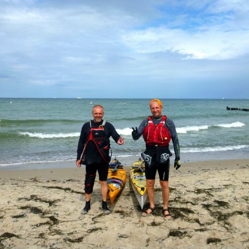 Martin si na moře natěšeně přivezl půjčenou Elefterii, seakajak grónského typu – bez kormidla, se skegem. Nikdo z nás na tyto kajaky není zvyklý. Ani Martin. V dmoucích se vlnách ho kajak evidentně moc neposlouchá. Martinovo klení je slyšet po větru možná až v Zadaru. Naštěstí tu je řešení – Adam je ochoten si kajak s Martinem vyměnit. Srazíme všechny 4 kajaky vedle sebe, vně Vašek a já, uvnitř Martin s Adamem. S Vaškem proti sobě pevně nalehneme na paluby vnitřních kajaků a kluci se přímo na moři přesouvají do sousedních kajaků. A je to. Martinovo láteření utichá, vystrašení Zadařané se z nábřeží pomalu rozcházejí do svých domovů 🙂