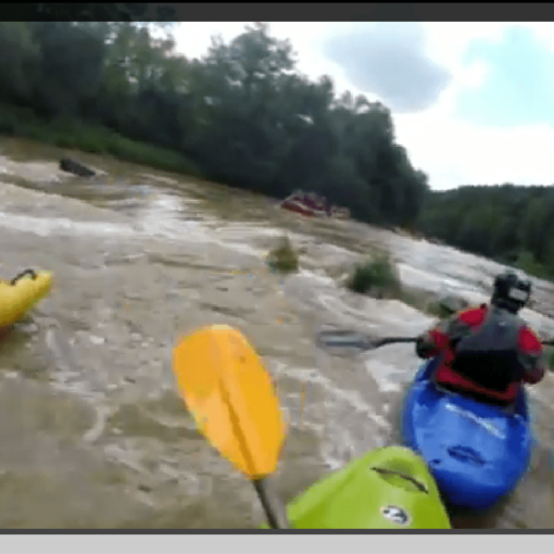 Vody v bystřině Bystřici je tak akorát. Start dáváme v Merklíně, pohodlně se usadíme do kajaků na břehu a skáčeme do proudu. Kameny v korytě se zákeřně schovávají v temné vodě, občas to někde drcne, občas v nějakém tom jízku někdo vyšlápne…. To k tomu patří, ne? Je přece konec roku, to se smí všechno. Skoro 😉