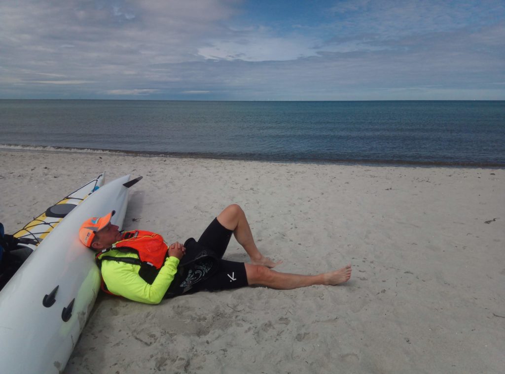 Po několika kilometrech pádlování se mi ztrácejí za obzorem a potkávám se s nimi až v cíli. Ale nevadí, žádné extrémy se dnes na vodě nekonaly, takže to bylo bezpečné pádlování. Vítr odpoledne oproti původní předpovědi nekleká, a tak si dávám ještě surfski „nášup“ na 15 km úseku Heiligendamm – Warnemünde.