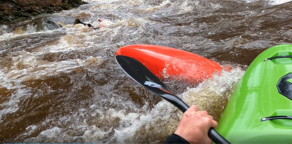 Po opětovném nasednutí do lodi ještě pomáháme zachraňovat další (také červenou) lodičku. Tato díra má asi velikou úspěšnost, protože Tom říká, že v ní také zaparkoval v loni, ale byla tak 4X větší (teklo přes 85 m/s). Holt jiná liga, na to už nemám.
