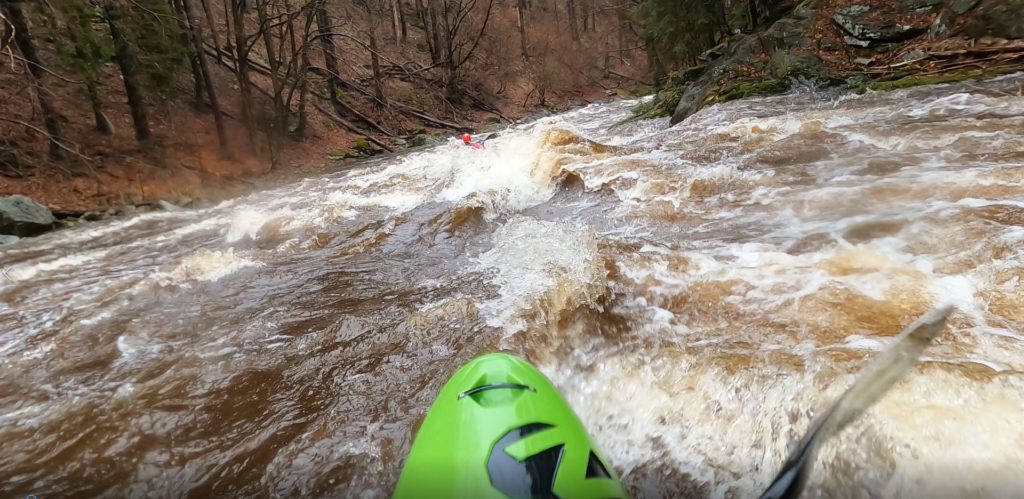 Kolem 11 hodiny přijíždíme na soutok Mumlavy a Jizery, začínáme potkávat další vodáky a jdeme se podívat blíže na vodu. Ten stav je opravdu o hodně vyšší, něž ráno. Dle aplikace to ukazuje 55m3/s.