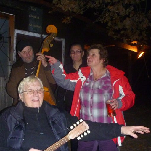 Program: ceremoniál na lodičkách se svíčkou (u nosu), opékání buřtů, zpívání